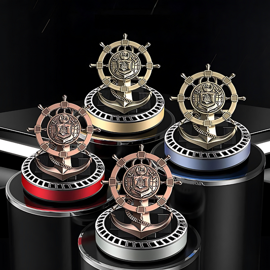 Solar Powered Car Air Freshener Retro Ship Rudder Rotating Diffuser