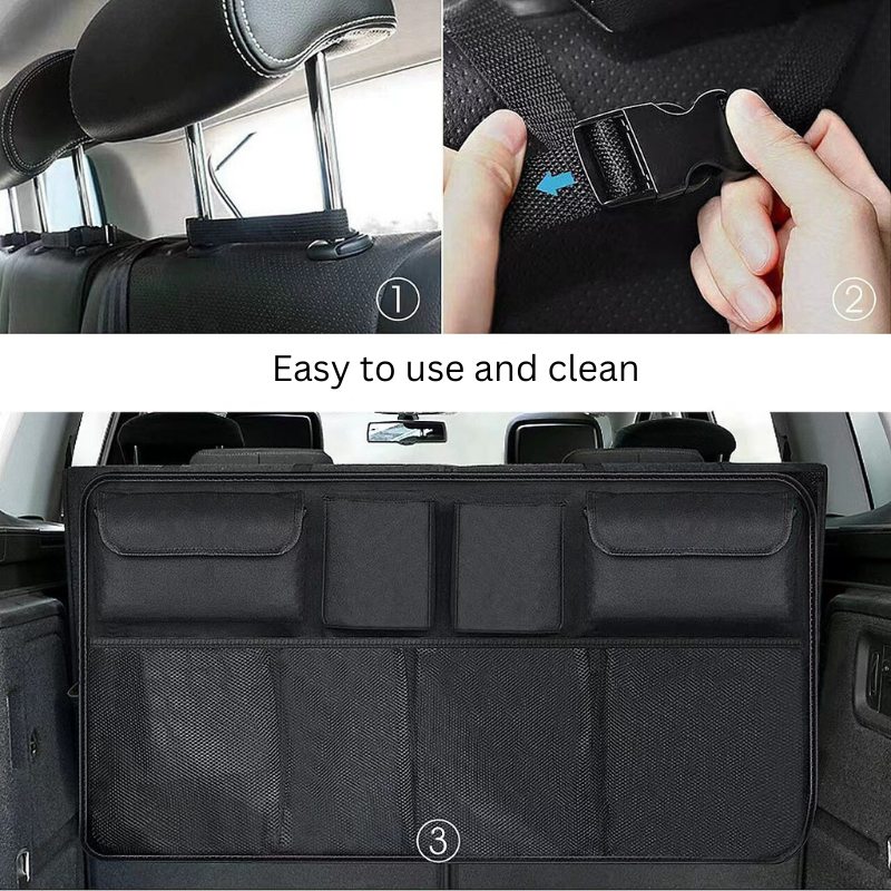 Introducing our Car Backseat Trunk Organizer, the ultimate solution to keep your vehicle tidy and organized. Made from durable Oxford cloth and featuring convenient mesh pockets, this organizer is designed to maximize storage space and keep your car clutter-free.