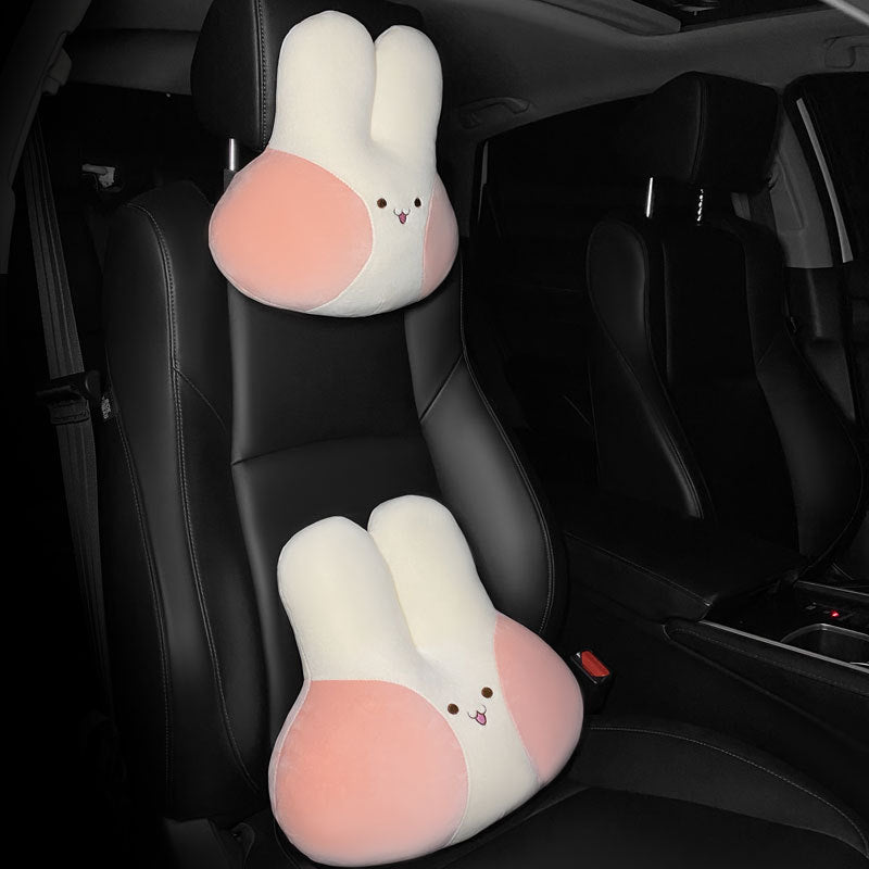 Cute Cartoon Rabbit Car Head Pillow, Back Pillow, Seat Belt Cover