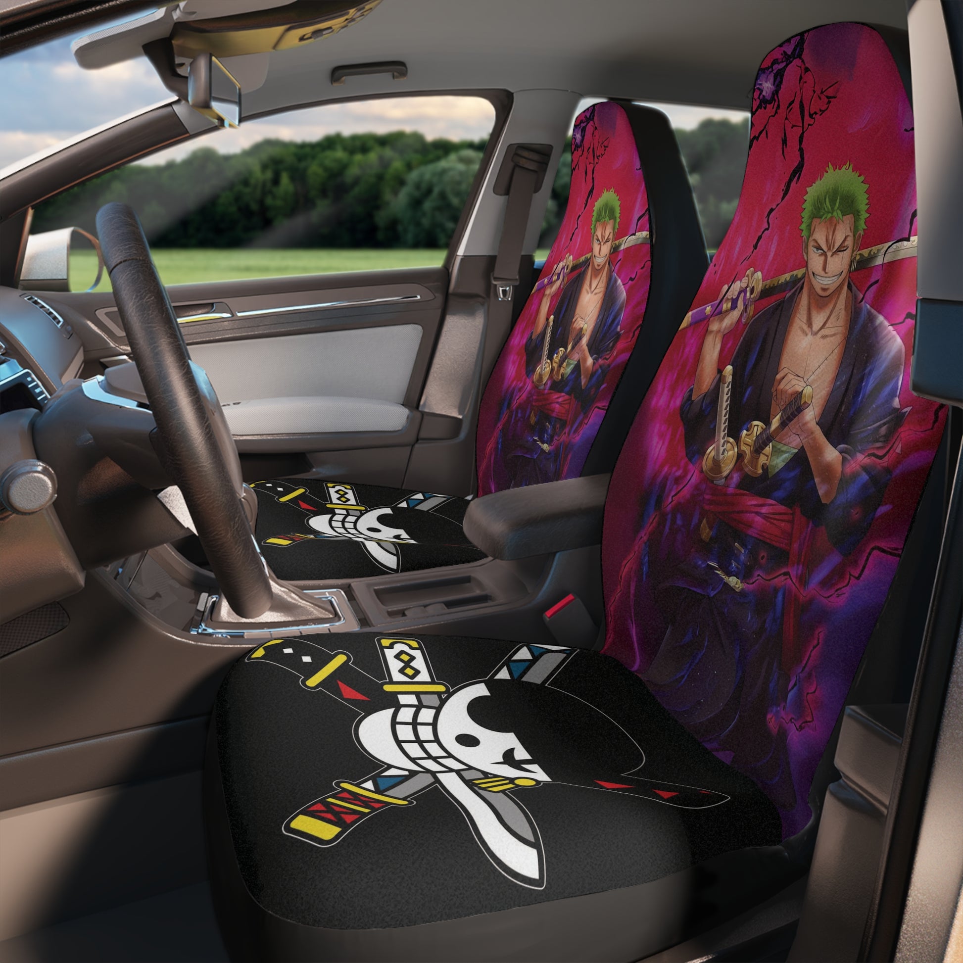 Transform your vehicle with the fierce energy of Roronoa Zoro with the One Piece Zoro Storm Car Seat Covers.