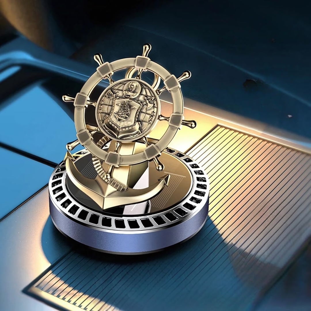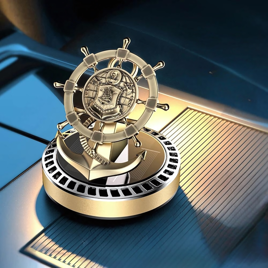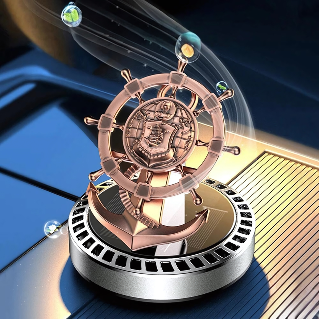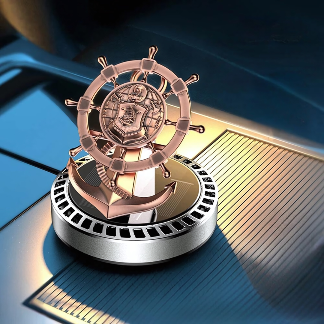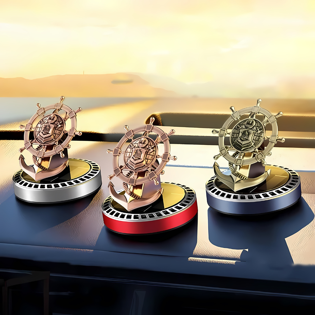 Get our innovative Solar Powered Car Air Freshener Retro Ship Rudder Rotating Perfume Diffuser. Place it in direct sunlight to get the wheel spinning.